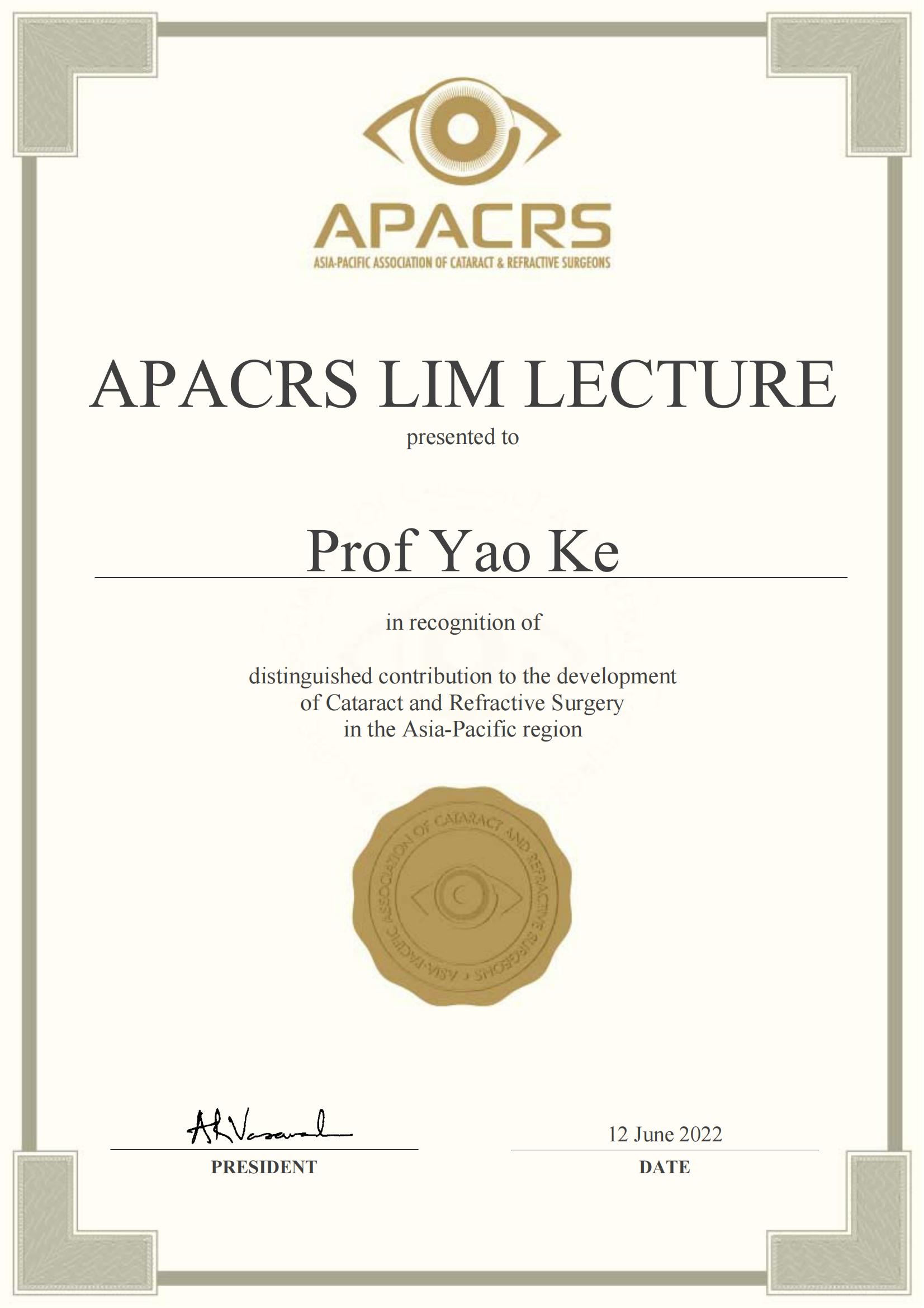 亞太白內(nèi)障及屈光手術(shù)學(xué)會LIM LECTURE獎