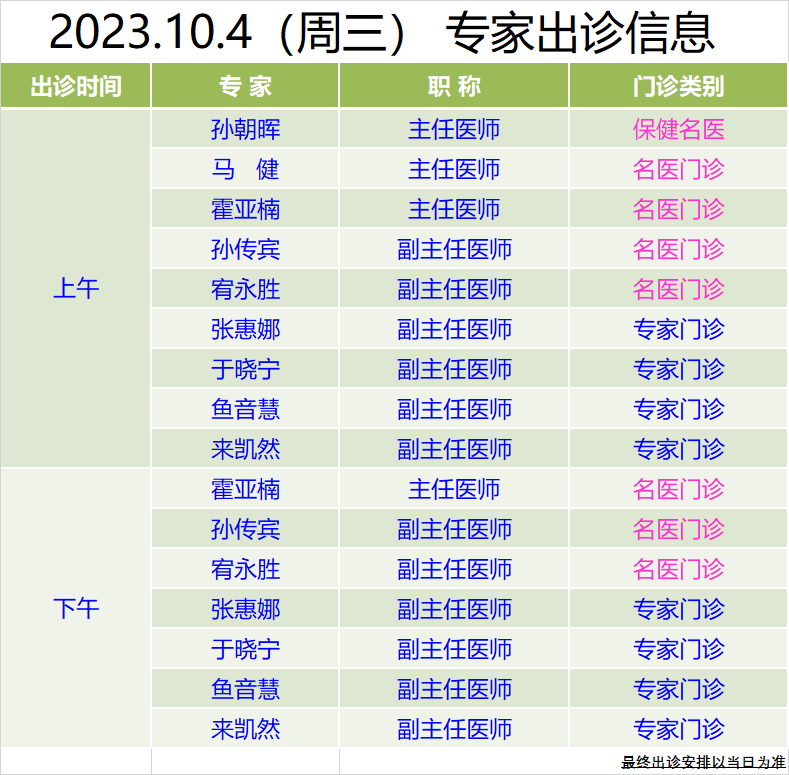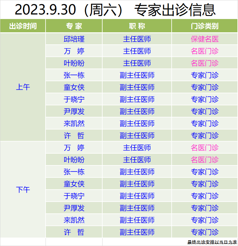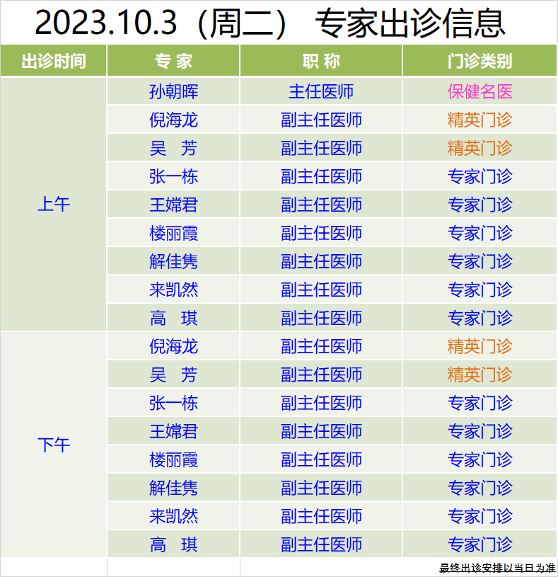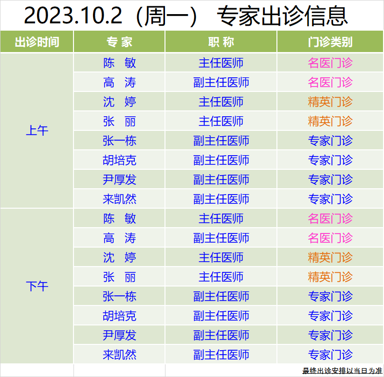 中秋國慶假期專家門診信息