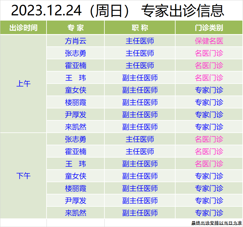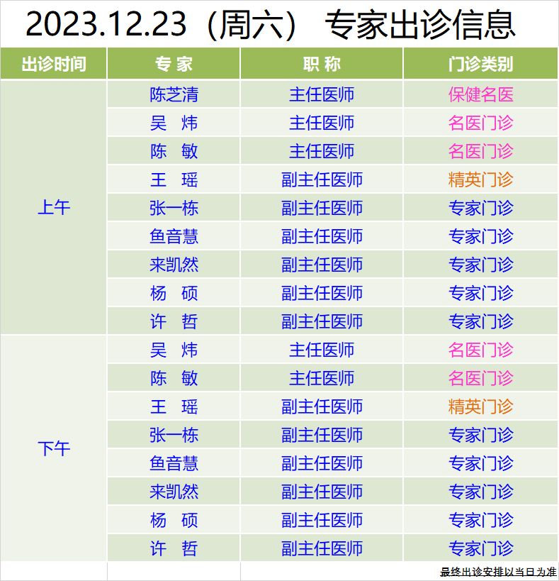 本周雙休日專家門(mén)診信息