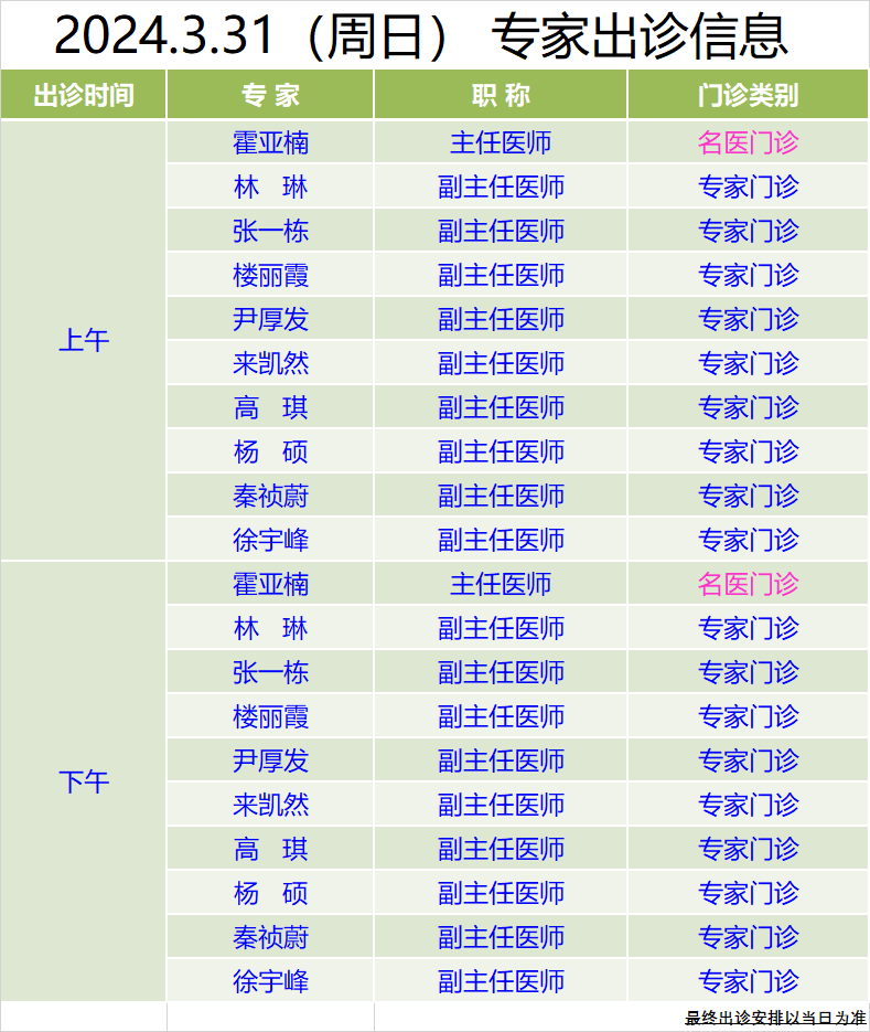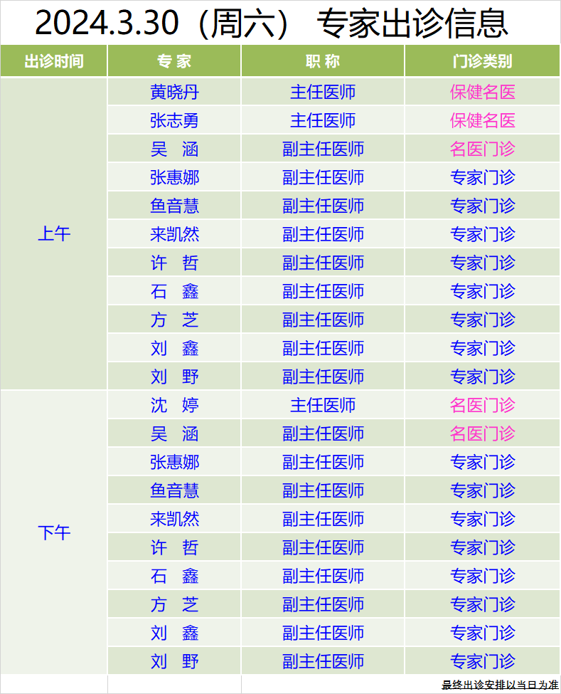 雙休日專家門診 | 3月30日、31日專家出診信息