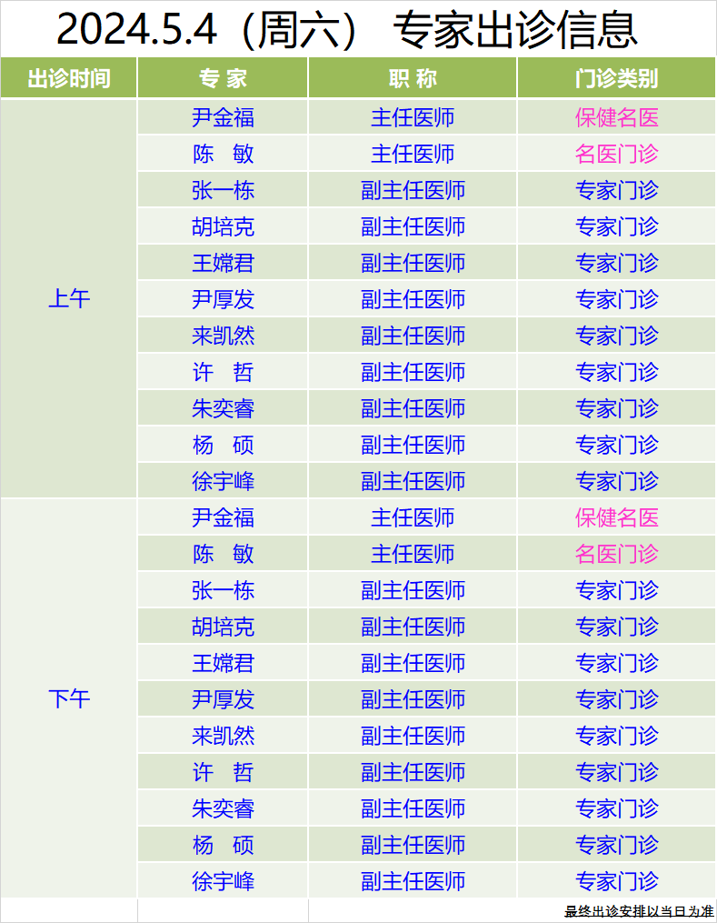 雙休日專家門診 | 5月4日、5日專家出診信息