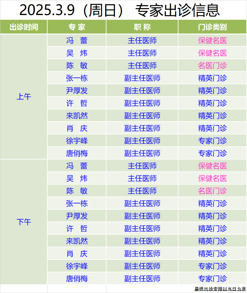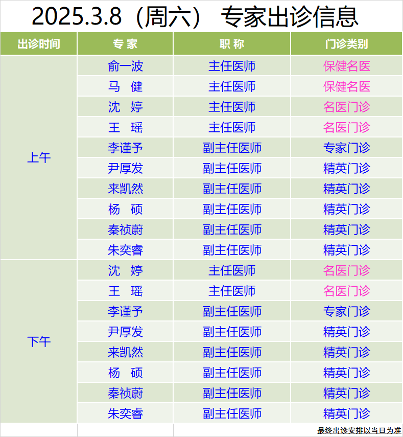 本周雙休日專家門診信息