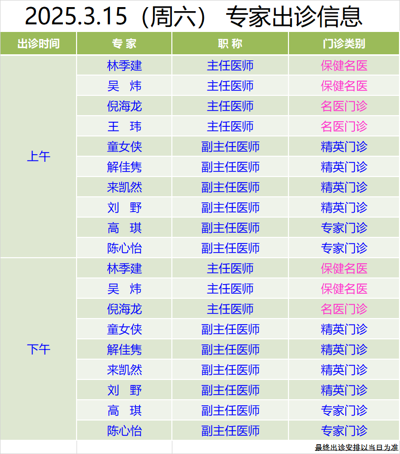 雙休日專家門診 | 3月15日、16日專家出診信息