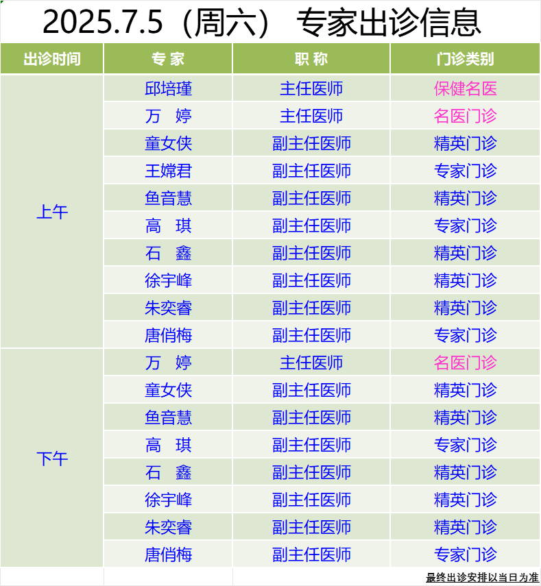 4. 周一至周五專家出診信息,敬請(qǐng)關(guān)注新浪微博@浙二眼科中心、微信公眾號(hào)【浙二眼科中心】。