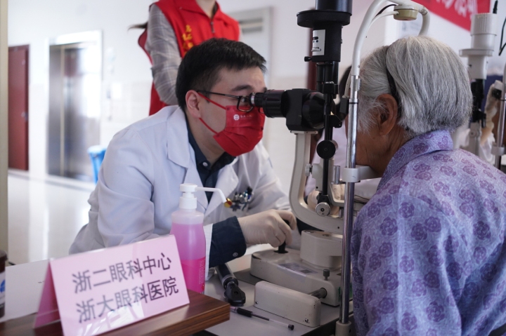 義診持續(xù)到下午4點(diǎn)多,共接診400余位居民,送出眼藥300余份。對(duì)于眼部輕癥,義診團(tuán)隊(duì)幫助居民聯(lián)系區(qū)級(jí)醫(yī)院眼科解決眼部困擾;嚴(yán)重的情況,團(tuán)隊(duì)當(dāng)場通過綠色通道為他們轉(zhuǎn)診到浙大眼科醫(yī)院,預(yù)約好對(duì)口的亞學(xué)組專家。