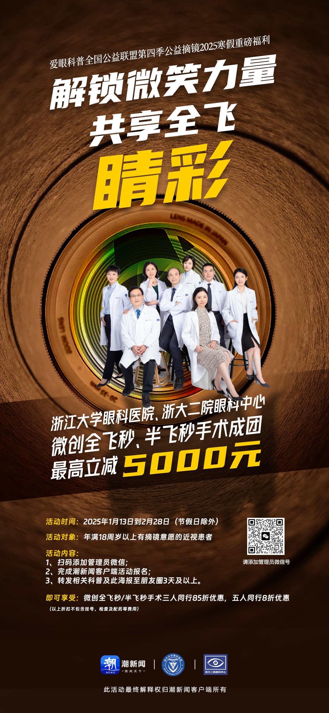 心心念念的福利正式官宣,1月13日(今天)起,潮新聞·錢(qián)江晚報(bào)攜手浙江大學(xué)眼科醫(yī)院送出價(jià)值千萬(wàn)元的近視激光手術(shù)組團(tuán)福利:三五好友成團(tuán),前往該院屈光手術(shù)中心做微創(chuàng)全飛秒/半飛秒近視激光手術(shù),即可享受8~8.5折不等優(yōu)惠,最高可省5000元!(文末報(bào)名)