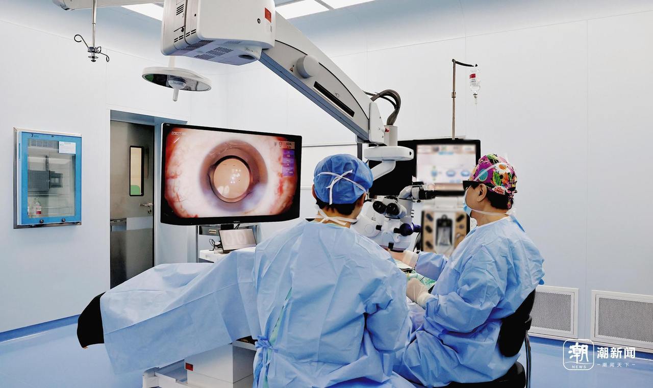 姚克(右一)主刀全國首例純折射連續(xù)視程人工晶狀體植入手術(shù)