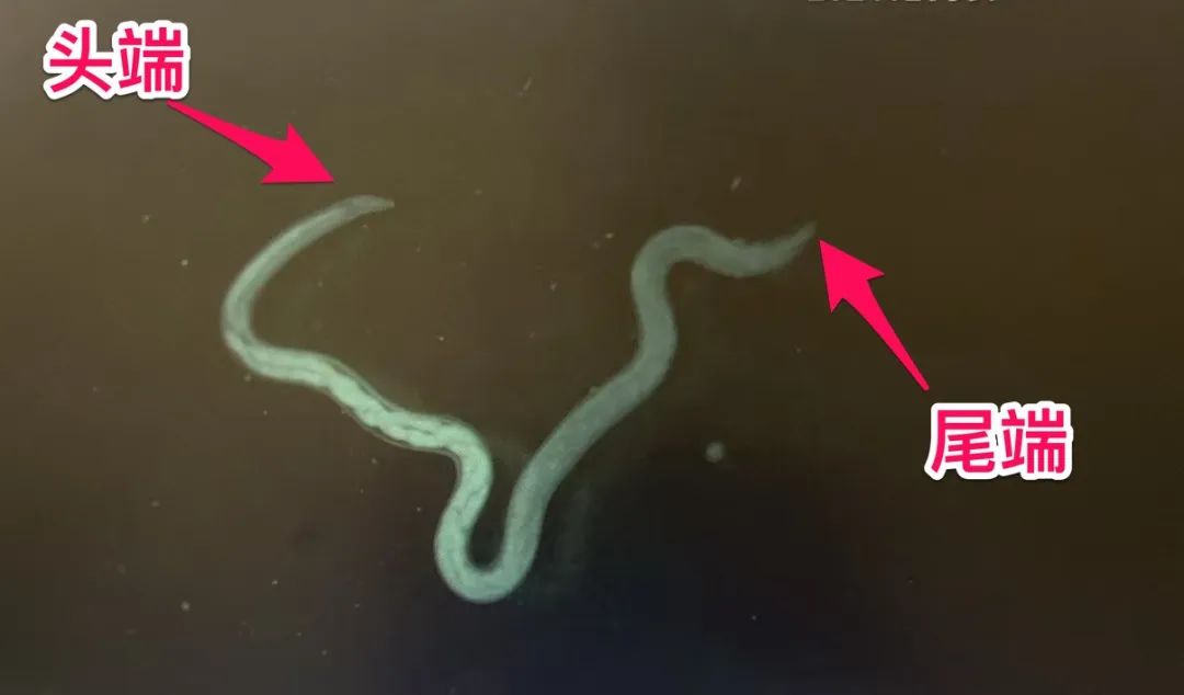 第二例病患送檢蟲體為結(jié)膜吸吮線蟲的雄性成蟲,雄蟲尾部向腹部卷曲,有交合刺。經(jīng)過形態(tài)學(xué)確認(rèn),結(jié)合患者病史和癥狀,這兩位患者的“小白蟲”最終被確診為“結(jié)膜吸吮線蟲”感染。