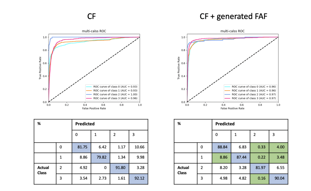 Fig. 3 使用生成的FAF圖像與否對(duì)于AMD分類的作用。