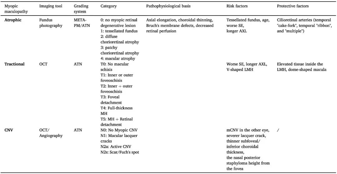 Tab. 1 不同類型近視性黃斑病變及其相關因素總結