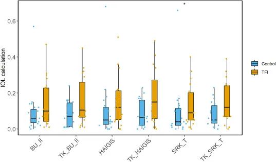 Fig.3. IOL 計算變異性方框圖。?, P < 0.05; TFI = 淚膜不穩(wěn)定。