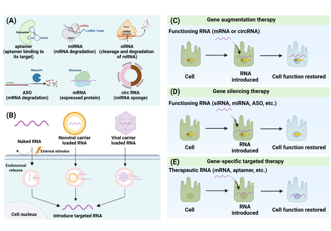 圖2. 不同種類(lèi)RNA療法的作用模式