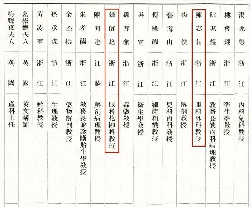 1931年廣濟醫(yī)校部分教師名單,聘有專業(yè)的眼科教授