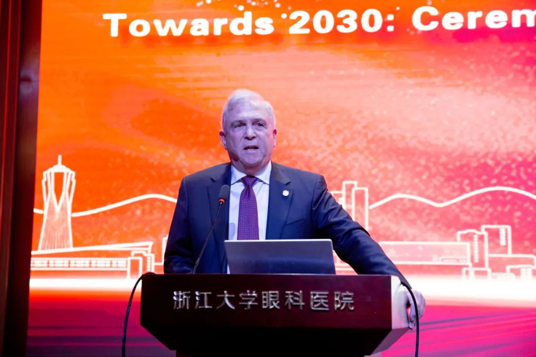 Richard Abbott教授回顧了自己與中國及杭州深厚的淵源以及與姚克教授之間堅(jiān)實(shí)的友誼。他表示,非常高興可以作為浙江大學(xué)眼科醫(yī)院名譽(yù)院長見證醫(yī)院防盲公益事業(yè)的新征程。同時(shí)他也代表國際眼科科學(xué)院向醫(yī)院表達(dá)了由衷的祝賀。