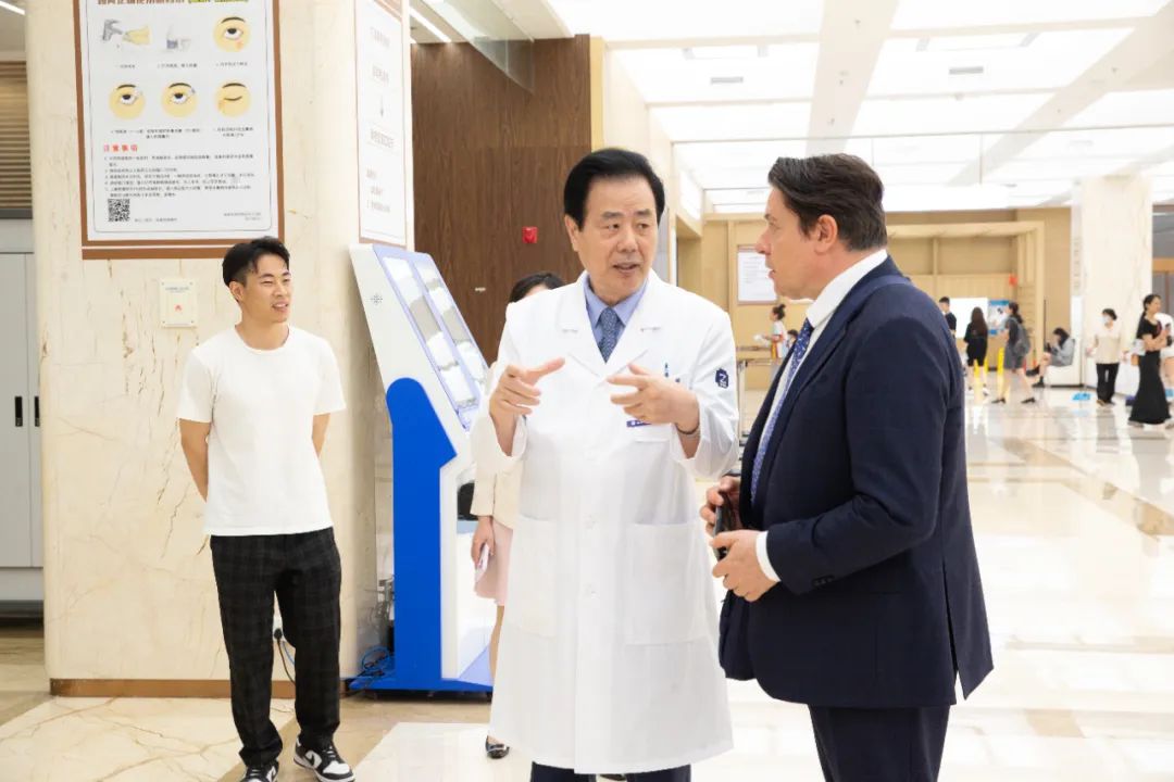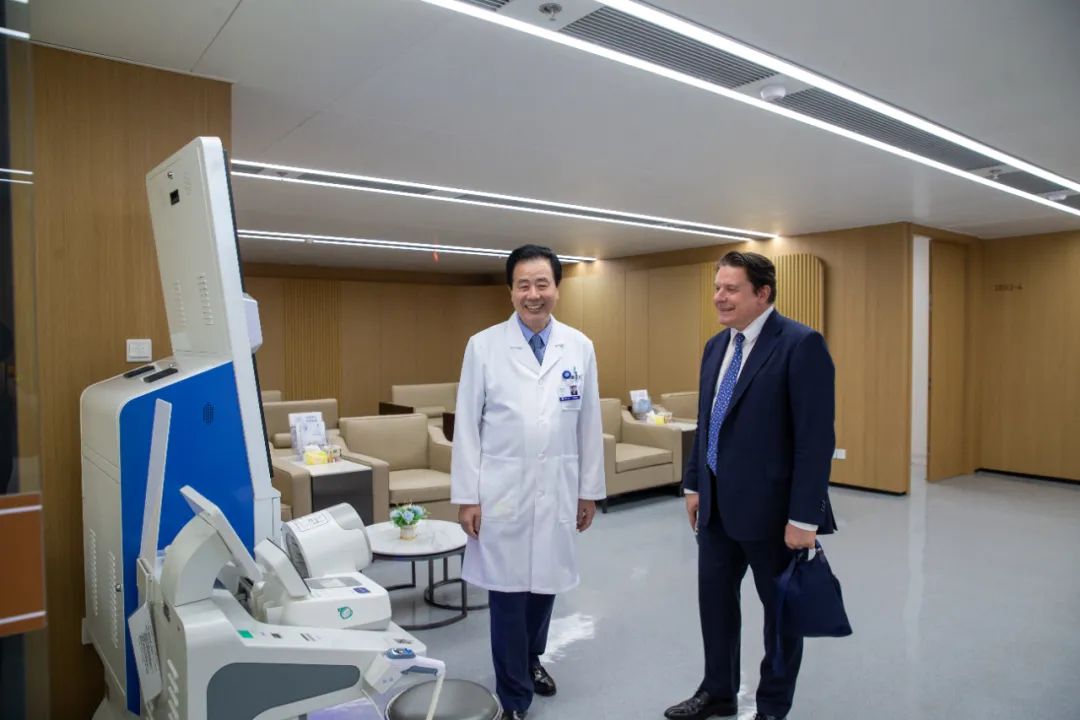 Ivo Kocur博士還參觀了眼科醫(yī)院新院區(qū)。中國眼科近年來取得的突出成就令他深感震撼,他深入了解了我院規(guī)模、設(shè)備、效率、流程及學(xué)科建設(shè)等各方面工作,并給予了高度評價(jià)。雙方期待可以進(jìn)一步加強(qiáng)溝通合作,為全球眼健康事業(yè)發(fā)展做出更大貢獻(xiàn)。