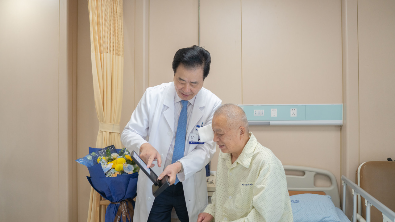 10月11日(重陽節(jié))一早,浙江大學(xué)眼科醫(yī)院院長、浙大二院眼科中心主任姚克教授專家團(tuán)隊(duì)和浙江省老年事業(yè)發(fā)展基金會牛方正理事長到醫(yī)院病房,看望前一天接受免費(fèi)白內(nèi)障手術(shù)的9位老人。