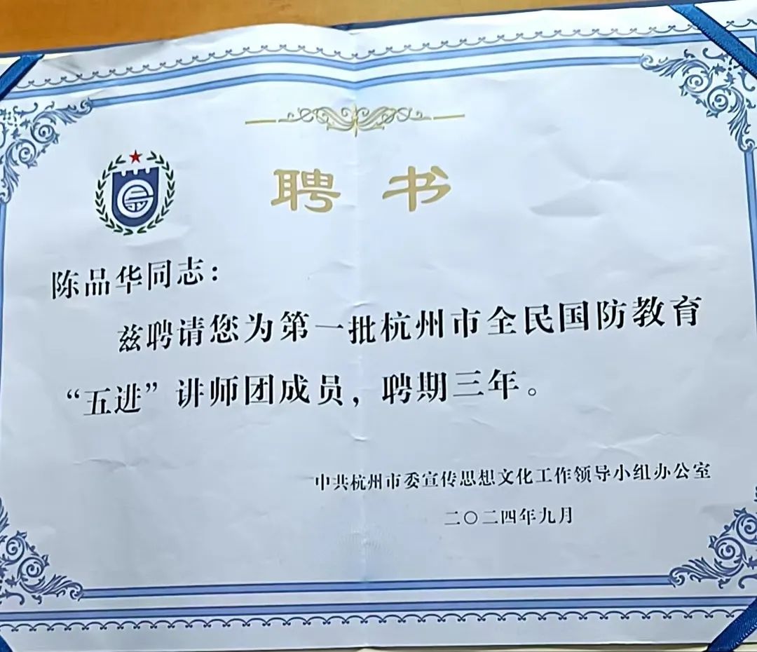 時光荏苒,二十載春秋又悄然流逝。當年鐵骨錚錚的漢子如今已年到古稀。退休后陳大伯被邀請為家鄉(xiāng)愛國主義宣講團成員,把大部分時間精力花在了國防教育和愛國主義教育宣講上,每年會講上三五十場,“退伍不褪色,退休不退黨”是他對自己的要求。