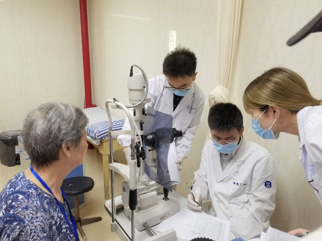 盛夏時刻,在姚克教授的支持下,在徐雯教授及浙江省老年事業(yè)發(fā)展基金會牛方正理事長、陳裕秘書長帶領下,由徐佳副主任醫(yī)師、許哲副主任醫(yī)師、防盲辦沈凌老師、呂丹旎醫(yī)生、徐經(jīng)緯醫(yī)生、朱瑩醫(yī)生等組成的醫(yī)療隊,滿載著愛與責任,從浙大二院眼科中心出發(fā),去往三百公里外的開化縣人民醫(yī)院。