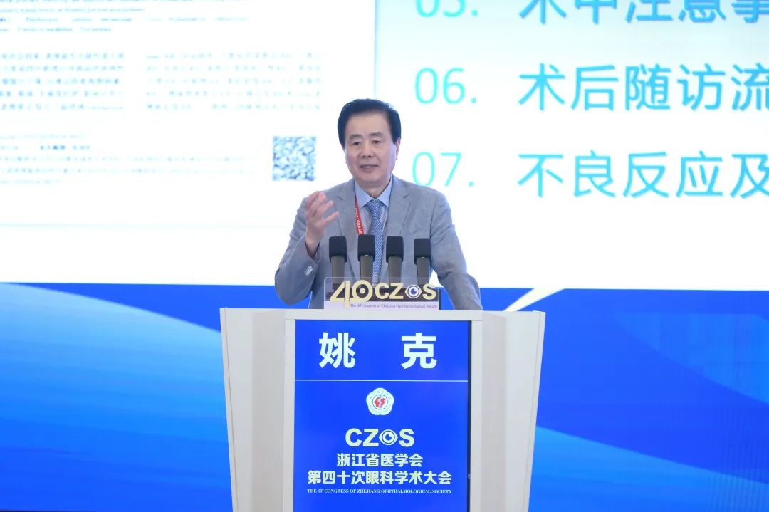 開幕式上,大會(huì)名譽(yù)主席,中華醫(yī)學(xué)會(huì)眼科學(xué)分會(huì)主任委員、浙江省醫(yī)學(xué)會(huì)會(huì)長、中華醫(yī)學(xué)會(huì)常務(wù)理事姚克致辭。他表示,學(xué)術(shù)交流是眼健康事業(yè)發(fā)展最重要的抓手之一,大批新技術(shù)、新理念借此走向全省全國。浙江眼科學(xué)術(shù)氛圍濃厚,構(gòu)建了覆蓋全國、全省、各地市的學(xué)術(shù)交流體系和平臺(tái)。他期待浙江眼科繼續(xù)做深做實(shí),勇立潮頭,引領(lǐng)全國乃至全球眼健康高質(zhì)量發(fā)展,為滿足人民群眾的美好生活需要做出更大貢獻(xiàn)。