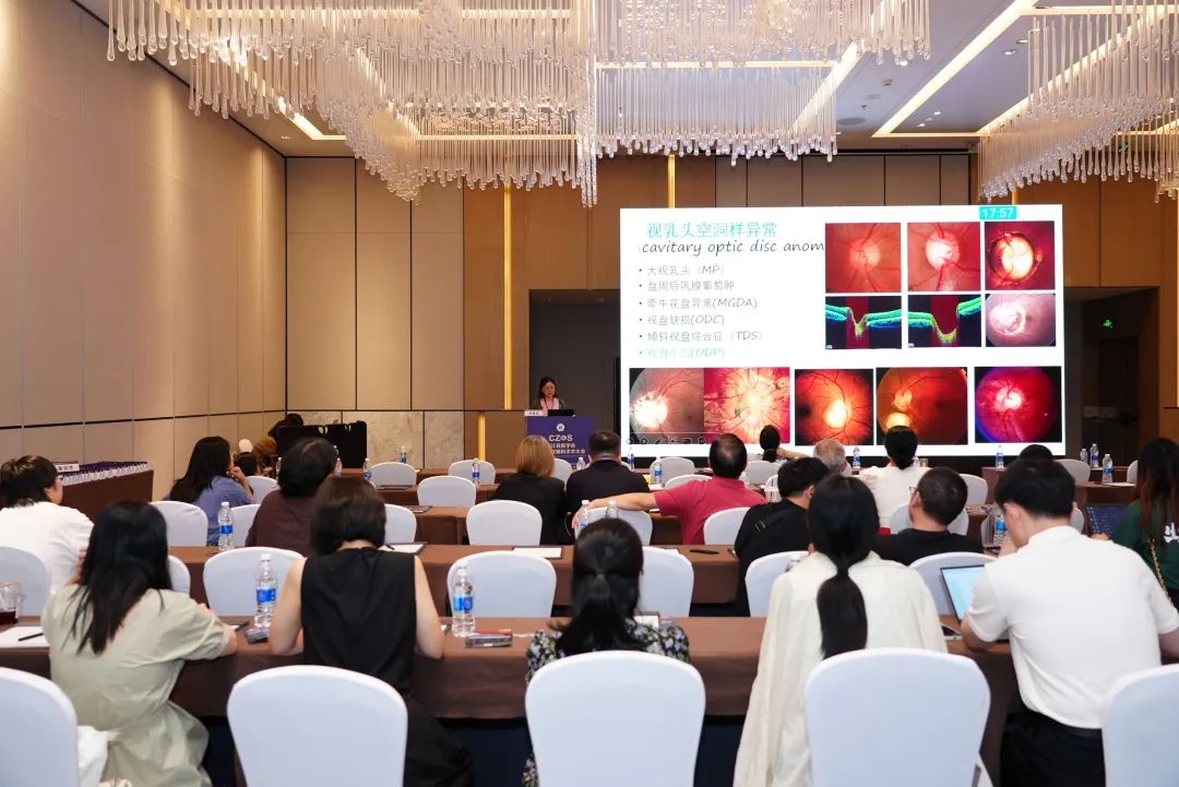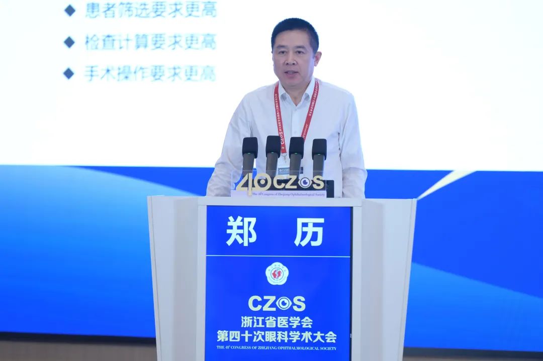 全體大會(huì)第二單元由浙江大學(xué)眼科醫(yī)院(浙大二院眼科中心)申屠形超教授、蘭溪市人民醫(yī)院屠元星教授主持,浙江大學(xué)醫(yī)學(xué)院附屬第一醫(yī)院沈曄教授、杭州明視康眼科醫(yī)院鄭歷教授、溫州醫(yī)科大學(xué)附屬第二醫(yī)院鄭海華教授、浙江省人民醫(yī)院沈麗君教授、浙江大學(xué)醫(yī)學(xué)院附屬第一醫(yī)院崔紅光教授分別作了題為《瞳孔直徑與有晶狀體眼后房人工晶狀體術(shù)后視覺質(zhì)量觀察研究》《聯(lián)合角膜重塑技術(shù)優(yōu)化三焦晶體術(shù)后視覺質(zhì)量》《大直徑黃斑裂孔手術(shù)的再思考》《黃斑疾病手術(shù)評估》《淚腺腺樣囊性癌的臨床特點(diǎn)與診治預(yù)后》的專題報(bào)告。