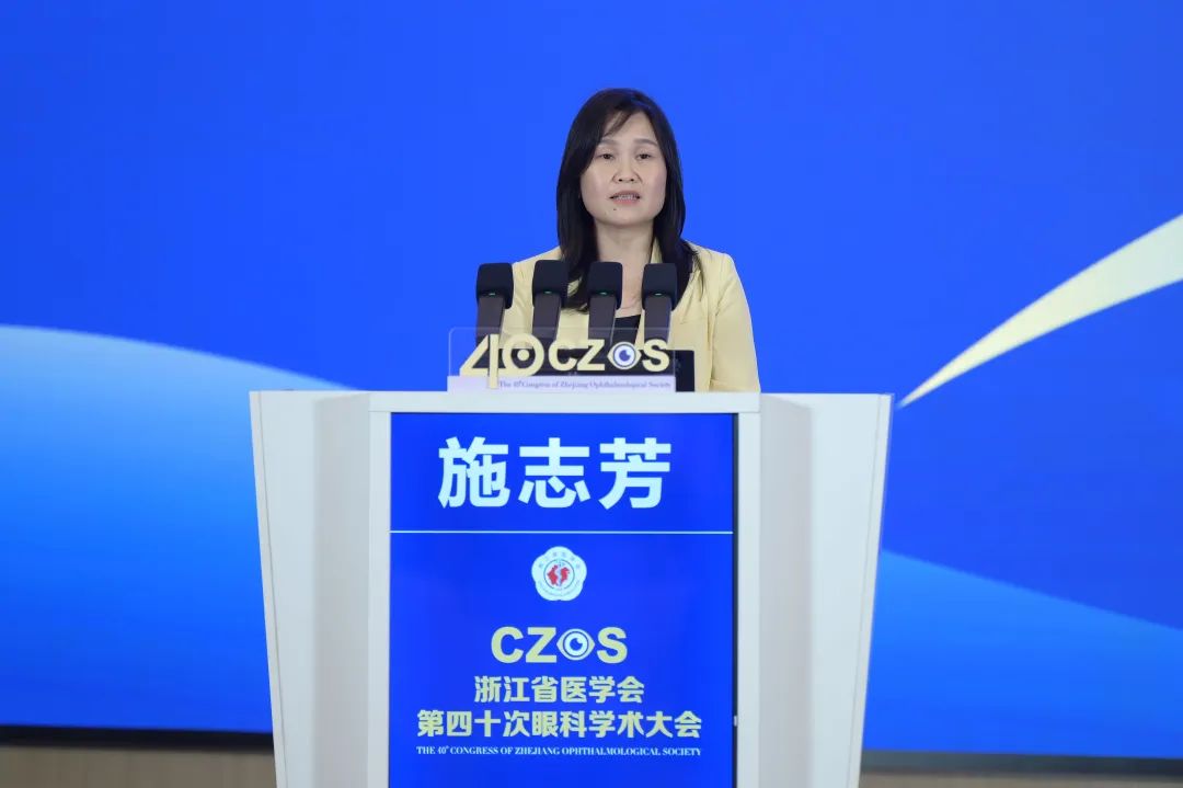 浙江省醫(yī)學(xué)會(huì)眼科學(xué)分會(huì)主任委員葉娟代表大會(huì)致辭。她表示,本次大會(huì)立足浙江,聚焦浙江眼科獨(dú)特的發(fā)展底色,定能為浙江人民得享更加可及、更高水平的眼健康服務(wù)貢獻(xiàn)更多力量。